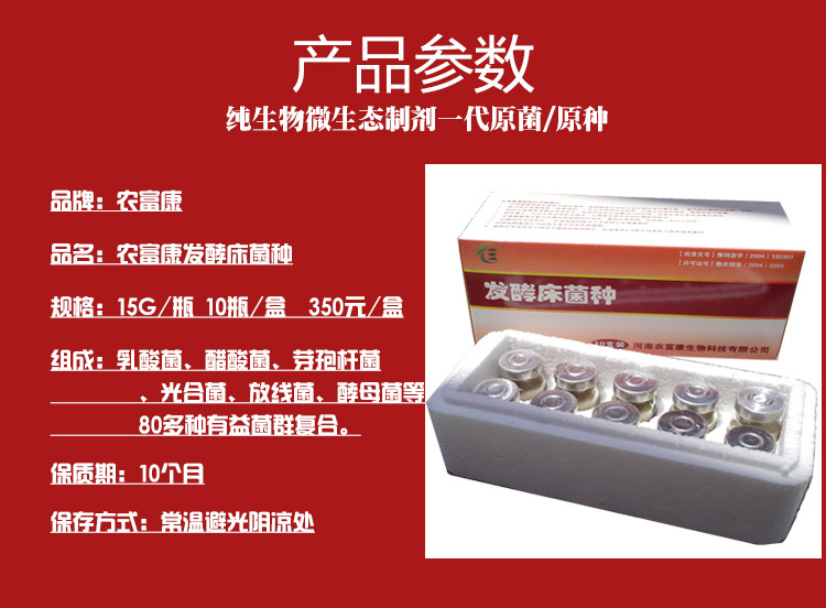 农富康发酵床菌种在异位发酵床上的用法用量 发酵槽规格:长度不限、宽度不限(用翻堆机的槽的宽度与翻堆机匹配)、高度在80cm-2米之间(一般在1.5米左右),底部可用水泥固化,防渗;顶棚屋顶(阳光棚或钢构棚)要有,既防雨水浸泡,又能提高温度,有利于微生物分解速度与分解程度,有利于发酵床工作。 发酵槽面积计算:按每头生猪0.33(或者按照0.2---0.4)立方米的垫料计算异位发酵床的规模,100头生猪采用33立方米垫料,1000头生猪采用330立方米垫料。如养殖1000头猪,深度为1.6米发酵床,面积206平方米左右。40立方左右可处理一吨左右污水。 垫料选择、比例:一般常见的垫料就是锯末、稻壳(或者玉米芯、花生壳、碎秸秆等的一种或者多种混合)、玉米粉(或者麦麸),锯末含量低值不低于30%,高值可全部是锯末,稻壳含量根据锯末调节(比如锯末30%的话,稻壳就是70%;锯末80%的话,稻壳就是20%);玉米粉按5平米加1公斤左右即可。初次建发酵槽,将发酵床菌与垫料混合,1瓶农富康发酵床菌种可做10平米发酵槽(异味发酵床),水分控制在40%-60%;往后可每两天添加粪污一次,翻堆一次,每周加一次发酵床菌,每次1瓶作用50平米异位发酵床。 发酵床中的粪尿有机物质至少经45天以上发酵后方可用作农田施用。 注意事项: 1、做好雨污分流饮水改造,防止多余的水份流进集污池,给后方处理带来压力。 2、定期添加生物菌,维持垫料中的纳豆菌等菌群的高温降解作用。 3、注意避免使用的消毒剂流入处理池中,防止对微生物生长繁殖造成影响。 4、发酵床有沉降迹象时,需添加垫料,以保证粪污里有充足的有机质供菌种繁殖。如果猪粪不够,可添加玉米粉、米糠等进行能量的补充。