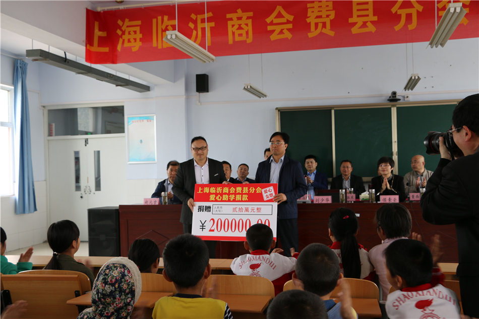 2017年4月20日,由上海市临沂驻沪办、上海市临沂商会、费县教委、招商局和民政局等部门的积极沟通与协调,上海费县商会主办的“传星火、筑未来”爱心捐助仪式在山东省临沂市费县举行。