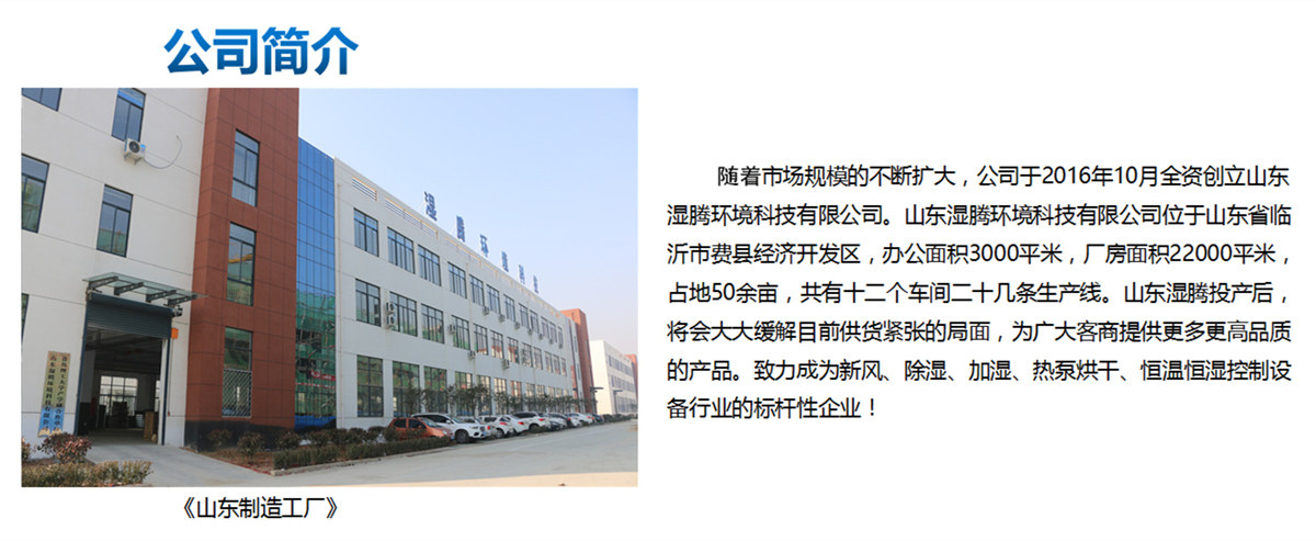 中国的空气污染让不少新风净化企业如雨后春笋一样拔地而起,但是各家企业的产品良莠不齐,难辨好坏,让消费者徒增烦恼。我公司是一家集研发、生产、销售为一体的特种温湿度控制设备高新技术企业。主要生产商用除湿机、中央除湿、中央新风、恒温恒湿、转轮除湿、高温热泵烘干及各类加湿器等一系列空气温湿度控制设备,同时可根据客户需求订制各类非标温湿度控制设备。不断提升产品品质、深耕市场,“旨”在为客户提供更好的产品。