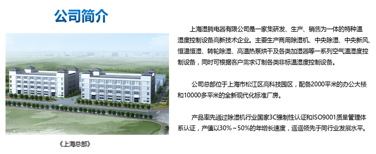 自成立以来,公司一直秉承“创新、品质、服务”的企业理念,积极创新,先后申请国家发明专利数项,实用新型专利等数十项,通过不断的技术和工艺创新,采用新材料,持续提升产品质量,率先通过除湿机行业国家3C强制性认证和ISO9001质量管理体系认证。卓越的恒温恒湿技术,赢得了全国各地客商的青睐和首肯。高标准,严重求,让湿腾电器成为值得用户信赖的企业,这也与本次慧聪品牌盛会的理念不谋而合,促成了两者之间的合作。