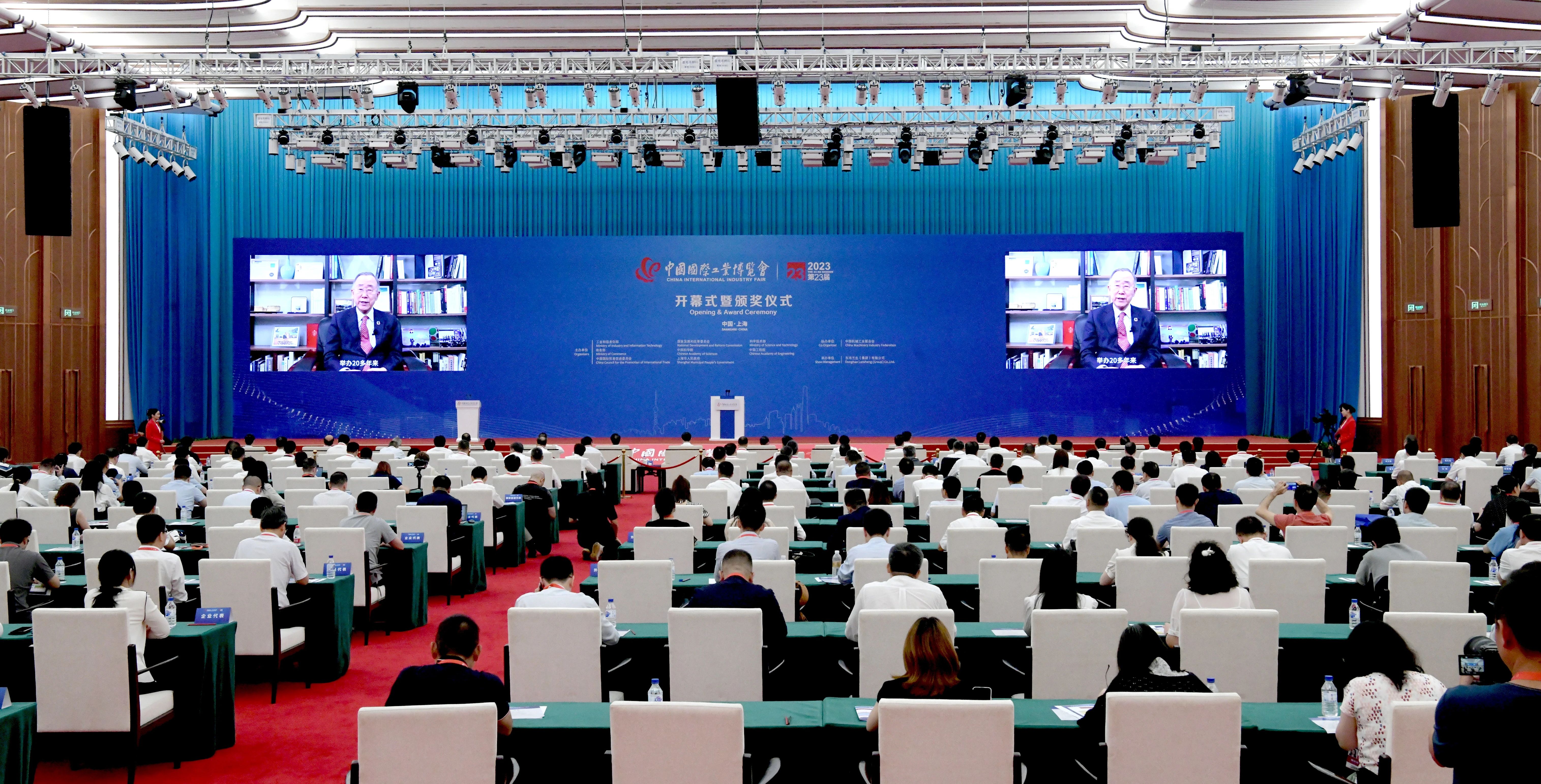上海市委书记陈吉宁出席并宣布第二十三届中国国际工业博览会开幕。中国工程院院长李晓红,上海市委副书记、市长龚正致辞,并共同颁发中国国际工业博览会大奖(含特别大奖)。联合国前秘书长潘基文作视频致辞。