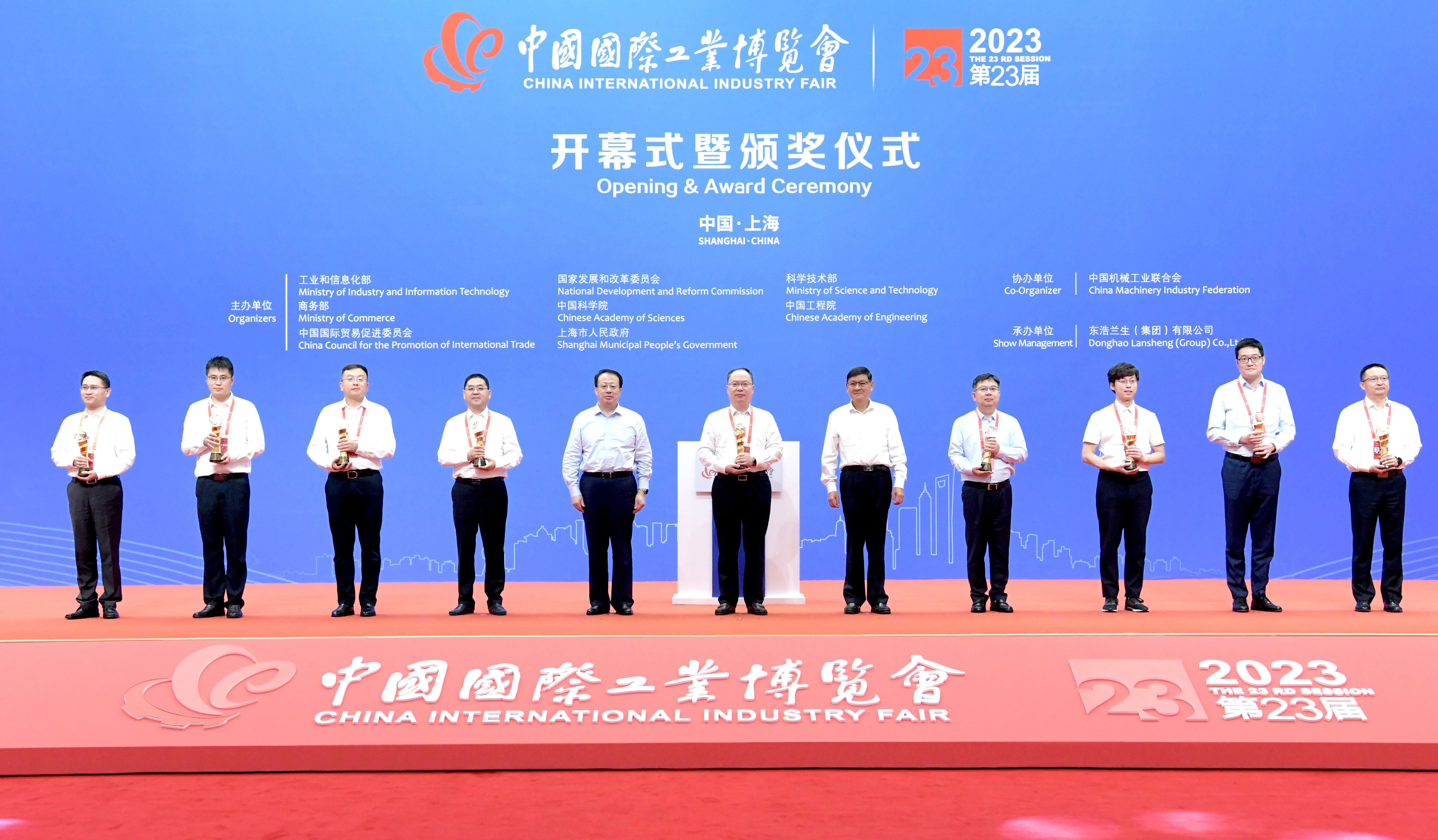 李晓红、龚正为获奖单位颁发中国国际工业博览会大奖(含特别大奖)