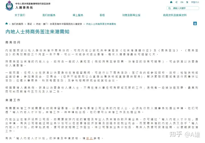 持商务签注来港的内地人士,如符合一般的入境规定(例如持有足够旅费、访港目的没有可疑等),可会获准以访客身份入境香港。