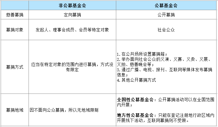 非公募基金会与公募基金会最大的区别就是能否向公众公开募捐,公募基金会能,非公募基金会不能。