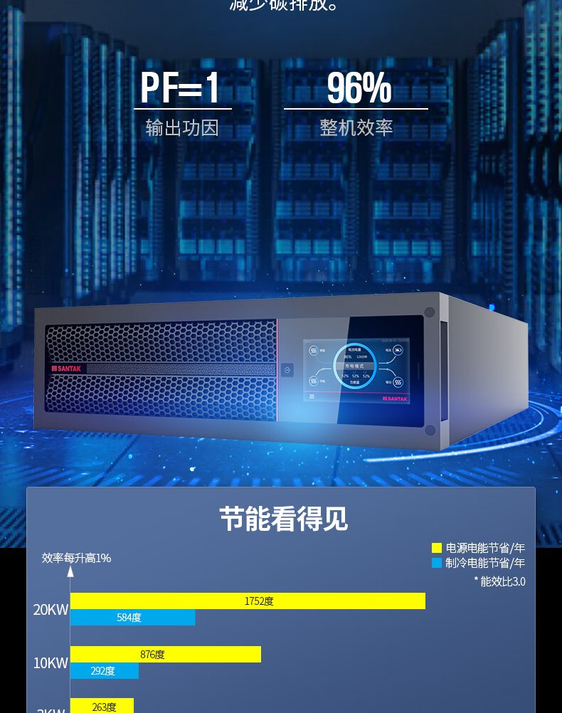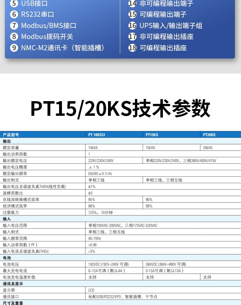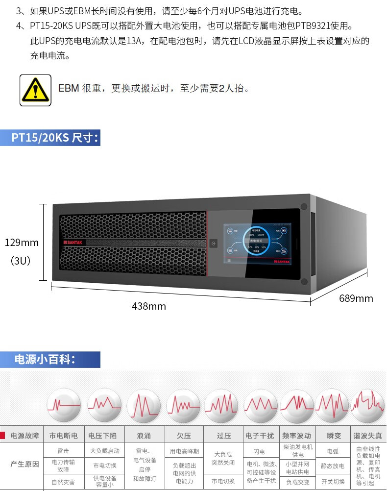 商品名称:山特(SANTAK)PT20KS PT20KS/20KW 三进三出在线式机架式UPS不间断电源 单机-需配电池使用